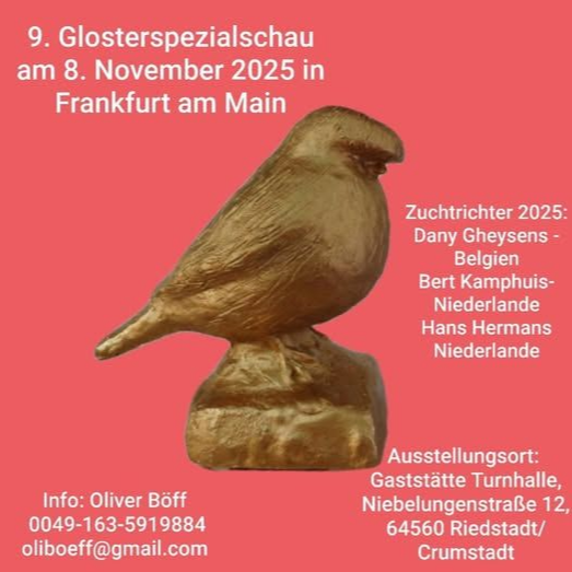 E-Mail: oliboeff@gmail.com oder,http://glosterspezialschau-frankfurt.de