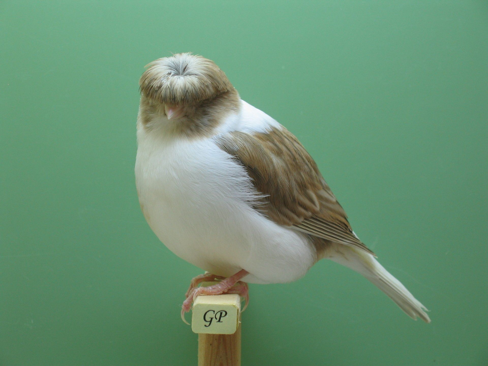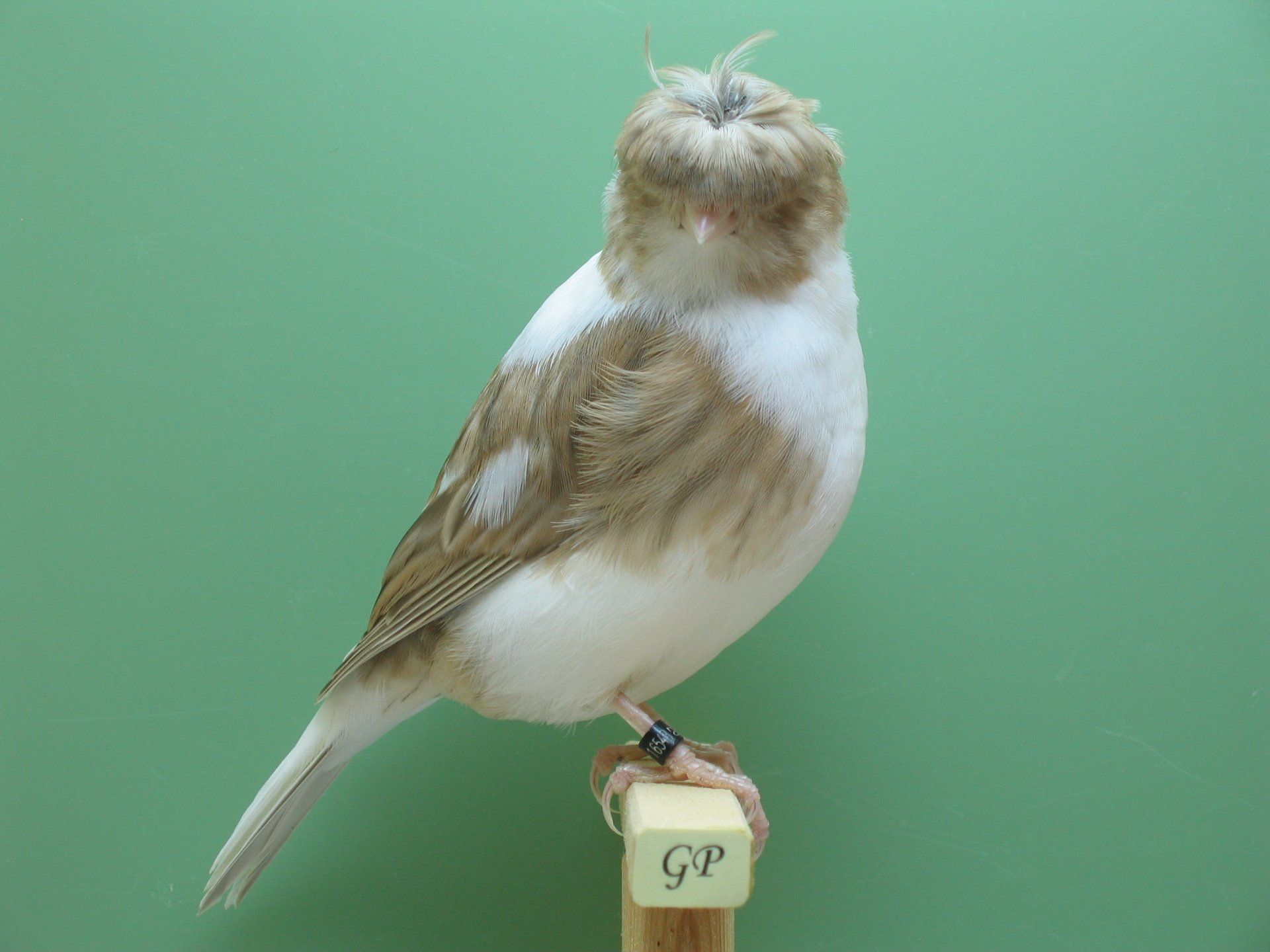 Unbedingt beachten sollte man allerdings, dass die Federstruktur der „Braunen“ anders ist. Die Feder ist grundsätzlich weicher und feiner gegenüber der „normalen“, insbesondere der grünen Feder. Diese etwas andere Federstruktur und Federtextur birgt gewisse Gefahren aber ebenso auch gewisse Vorteile. Man sollte es aus meiner Sicht vermeiden, Braune über Generationen zu verpaaren, da die Feder sonst definitiv zu weich und zu fein wird. Das gleiche Problem tritt auch auf, wenn man über Generationen B mal B Vögel, helle Vögel wiederholt verpaart oder grundsätzlich Vögel mit zu weicher Feder. Die feine Federstruktur der braunen Gloster ist aber sehr interessant, da sie grundsätzlich für ein seidiges Erscheinungsbild und eine sehr ansehnliche Haube sorgt, wobei aufgrund der Feinheit der braunen Federn optisch (bei den braunen Glostern) oftmals der Eindruck entsteht, dass es diesen an Typ fehlt und die Vögel insgesamt zu schmal sind.