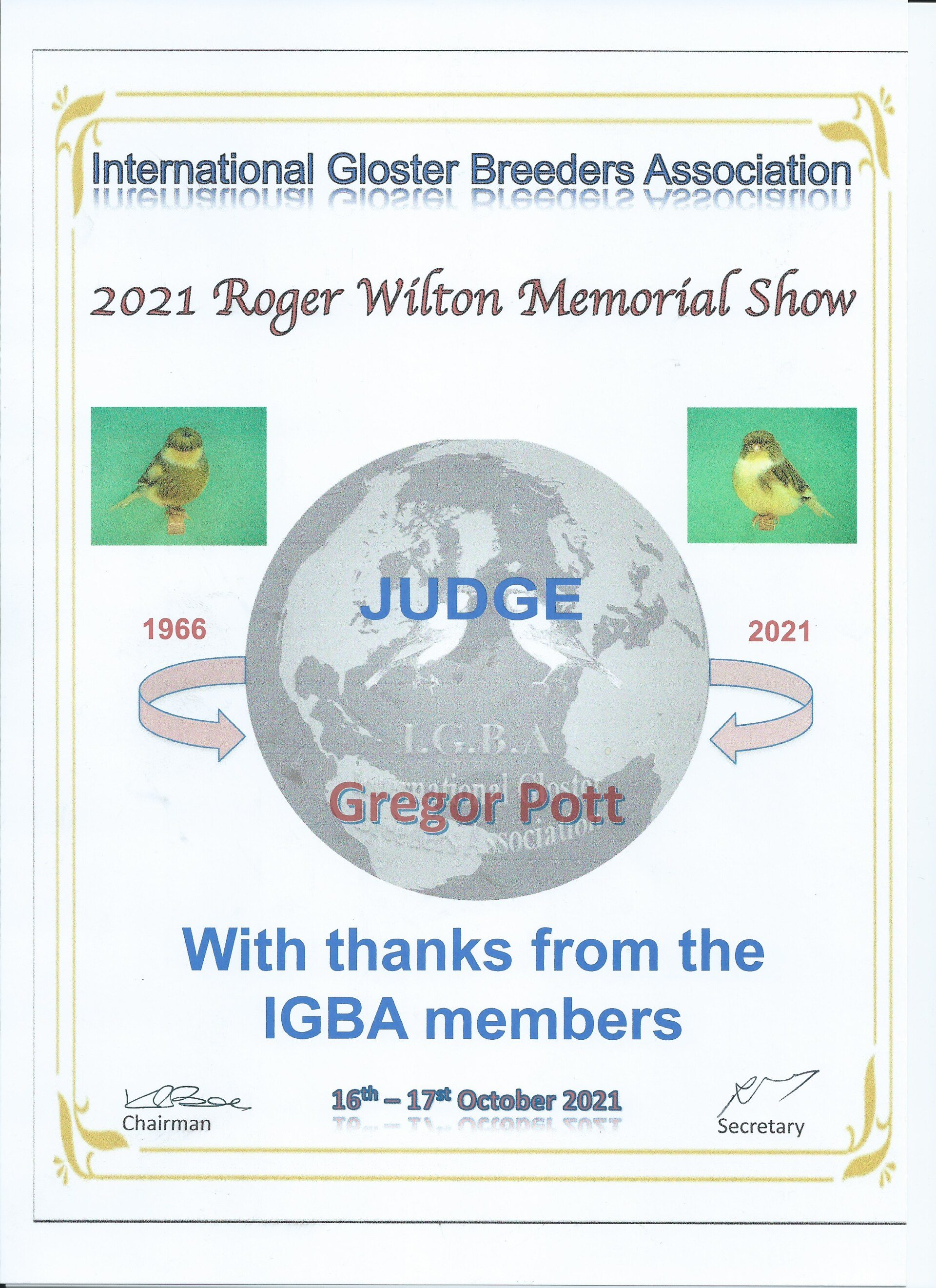 Eine besondere Ehre wurde mir zu Teil, als ich die IGBA-Show 2021 in England richten durfte. Neben der „South Coast All Gloster Show“ in 2018 war es bereits die zweite Glosterschau, die ich im Mutterland des Gloster richten durfte.